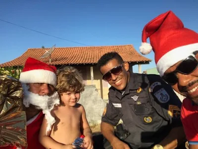 Policiais do Destacamento de Policiamento Ostensivo (DPO) do Farol do São Thomé, distribuíram presentes de Natal para as crianças da localidade. As fotos e vídeos estão circulando nas redes sociais nesta terça-feira (26). A festa contou até com a presença do Papai Noel.